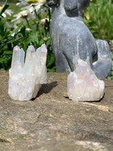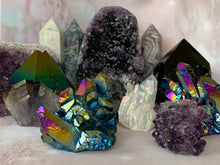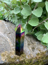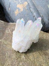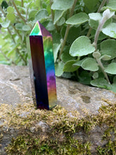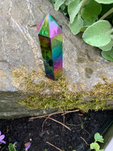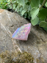 Angel Aura Quartz - Quartz bonded with Platinum and Silver, sometimes Gold or other trace metals; exhibits a light blue, rainbow and silvery iridescence like the gossamer wings of angels. It carries a very loving and sweet energy, stimulating the spirit and elevating one’s mood.