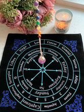 Made from velvet, these pendulum mats are ideal for beginners to attain their answers. Easy to fold and put away somewhere safe. These 32cm pendulum dowsing mats are embroidered with an ornate triquetra motif for the Celtic mat and Astrological Names for the astrology mat, with royal blue motifs. Both feature directional responses, numbers, Yes, No, Maybe, numbers and days of the week. Great for gaining more definitive answers to whatever questions you may have.