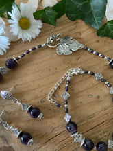 Choose from two designs..natural snakeskin Jasper or amethyst. Made by lil’ old me by beads bought from my local bead lady (I believe in supporting other small businesses, especially when they are quite close to where I live). Each necklace in the set features a Tibetan silver oak leaf which I couldn’t resist buying as the oak is my favourite tree. My poor husband had to suffer nearly an hour of me just staring at beads going oooooo and ahhh and “I know what I can do with these”, bless him! So here’s a couple of creations, which I hope you like? There’s only one of each, but I’m hoping to get more bits in soon to make slightly different ones in an aim to keep them as unique as possible…so one of a kind! Each set has a bracelet, necklace with oak leaf pendant and a pair of earrings.