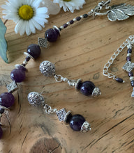 Amethyst: Yes, this one is slightly more expensive, but is threaded with solid chunky amethyst beads and real seed pearls in a fabulous dark purple. The cost of the beads on this one cost considerably more than the other two designs available. This one features Celtic inspired Tibetan silver findings and a sacred spiral pendant bail. Amethyst is an all round healer, raising your vibration, purifies the mind and assists removing negative thoughts. When used in meditation can reduce stress (especially worked related) and anxiety. It has been used for opening and improving psychic ability (clairvoyance), spiritual expansion and increased potential. Many use it for relief of insomnia when placed under a pillow. Brings spiritual harmony to mind, body and soul. A protective stone against negative energies, it can ward from psychic attack and especially useful if empathic as it assists with grounding energy when in your vicinity. As it transmutes energies from negative to positive.