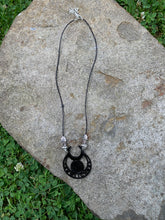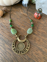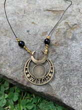 Ta da! These pieces have been put together by me, they feature either a silver, black or bronze effect metal pendant with the word WITCH emblazing it, teamed with the inverted crescent moon. I have tried to make the black and bronze effect ones a little different, so the one you buy will be unique to you. The silver ones are simple and come on a silver plated chain.